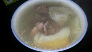 榴槤排骨湯2. 排骨加水,榴槤殼開始煲湯,大概2個小時。然後把榴槤殼撿出來,放榴槤肉,再繼續煲30分鐘,最後放鹽。最後最後就是來一碗嘍~