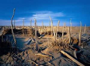 說法二:樓蘭衰敗於乾旱、缺水,生態惡化,上遊河水被截斷後改道,人們不得不離開樓蘭。