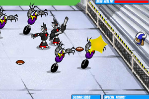 機器人來犯,作為前橄欖球隊員的你拿起你的橄欖球開始反擊來犯的機器人,快點給機器人一點教訓吧~~!