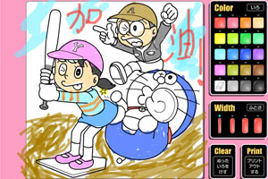 操作說明:滑鼠左鍵點擊選擇彩筆顏色和筆畫大小,點擊拖動為機器貓他們畫上好看顏色。