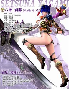 | 八神剎那 身高/167cm 三圍/92/58/87 體重/秘密喔 所屬/八神家 武器/前鬼·後鬼 屬性/暗與光 以找出邪惡的元素,並封印之為使命的八神家的女兒。和悠樹是從兄妹,性格善良。悄無聲息地遊走於陰影之間的她,有著“無音的影使”的異名。 前鬼·後鬼 八神剎那的兩把小太刀,是八神家次代相傳的護身刀,一對掌管森羅萬象的陰陽的刀。而且可以控制任何物體的影子,斬斷所有的敵人,通稱“陰陽雙鬼”。 | ![]() |