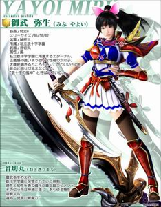 | 御武彌生 身高/163cm 三圍/86/58/82 體重/秘密! 所屬/私立鐵十字學園 武器/音切丸 屬性/風 隸屬於私立鐵十字學園的永恆,正義感很強的正直的女孩子。雖然性格上有些大大咧咧,一旦看見可愛的東西就顧不上周圍了,擁有“鐵十字的風神”的異名。 音切丸 御武彌生的太刀,保管在鐵十字學園的神劍。兼備理性與知性的最上級元素,那神速的斬擊之下,什麼也會被一刀兩斷。通稱“鏇風的斬魔刀”。 | ![]() |