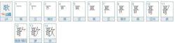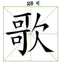 歌[漢語漢字]歌字從欠,從哥聲。“哥”字從二可,可字義為“肩挑、荷擔(以運送土石)”,即服徭役;二可上下疊加所造成的“哥”,表示的是“服過二次徭役、資深服役者”。“欠”即“欠身”,指上半身動作、胸部動作。“哥”加“欠”表示“資深服役者的胸部動作”、“資深服役者用聲音抒發胸懷”。故“歌”本義是:資深服役者傳唱、吟誦的民謠。唱:歌唱、歌詠、歌頌、歌壇、歌台舞榭、歌舞、能歌善舞。