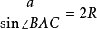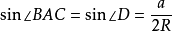 因為BD為外接圓的直徑BD = 2R。根據正弦定義