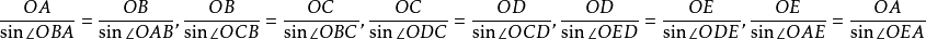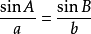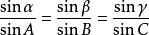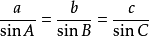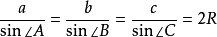 一個三角形中,各邊和所對角的正弦之比相等,且該比值等於該三角形外接圓的直徑(半徑的2倍)長度。