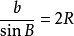 如圖,作△ABC的外接圓,O為圓心。連結BO並延長交圓於D, 設BD=2R。根據直徑所對圓周角是直角及同弧所對圓周角相等,可得:∠DAB=90°,∠C=∠D。