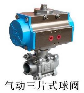 氣動三片式球閥已廣泛套用於石油、化工、發電、造紙、原子能、航空、火箭等各部門,以及人們日常生活中。