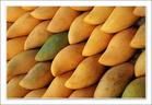 區別:果實的大小、形狀、色澤、纖維多少、核大小等,是區別芒果品種的主要依據,但芒果的品種、品系很多,過去多用實生苗繁殖,產生了許多自然雜交種,新的品種又不斷地被人工培育出來,如目前菲律賓大學研究人員用人工遺傳方法培育“無核”芒果,已取得初步成績,所以現在全世界約有1000多個芒果品種,且一直都沒有一個完整的品種分類系統。由於品種不同,芒果最大的重達幾公斤,最小的只有李子那么大;形狀各有不同,圓的、橢圓的、心形的、腎形的、細長的、豐厚的等都有;果皮顏色有青、綠、黃、紅等色;果肉有黃、綠、橙色等色;味道有酸、甜、淡甜、酸甜等。