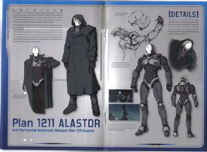 | Plan 1211 | ALASTOR | 不明 | | 雷納德開發的小型自律行動性AS,專作保鏢與保全使用。體形像一個高大的男子,腕部裝備50口徑來復槍。必要時會自爆,四射鋼珠。 |