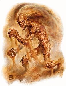 沙塵惡靈看起來像有著長期衰敗外表的憔悴的人型土元素。儘管它外表如此,它有近400磅重。