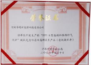 2008河南城鄉科技致富項目博覽會金獎獲得的專利產品——秸稈氣化爐及柴煤兩用多功能燃氣爐被中宣部、中央文明辦等12部委“三下鄉”重點示範工程確定為推廣產品”單位,是中央電視台“星火科技30分”、安徽衛視、山西電視台等眾多媒體特別關注項目,公司產品氣化爐先後獲得鄭州2005年先進適用技術博覽會、烏魯木齊國際博覽會、吉林長春2006農業博覽會、河南駐馬店東西部合作交流會等多枚金銀獎牌,被邀為“中國農村能源行業協會”、“中國環保產業協會”會員單位,確定為河南省高新技術企業。 公司堅持以科技創新為先導,以質量求生存的經營理念,視保護環境,節約能源,造福人類為己任,團結協作