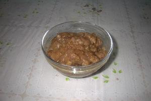 2.豬瘦肉切成肉末,加入適量鹽,胡椒粉,生粉,醬油,水,幾滴香油,拌好備用.