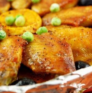 雞翅500克、紅薯1個、黑橄欖數顆、法式黑胡椒醃料一袋、蜂蜜適量、黑胡椒研磨適量、海鹽研磨適量。