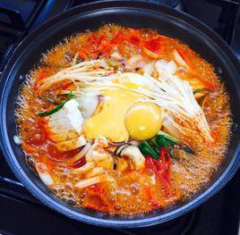 泡菜火鍋是一個以土豆片、蘿蔔片、菌菇、豬肉、捲心菜、山藥、內酯豆腐為主要材料的菜品,口味鹹鮮。