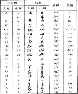 | Ł | Ł | ł | ł | [ȗ] 或者 [w] | 齒音 [l] 用在東部的方言裡 |