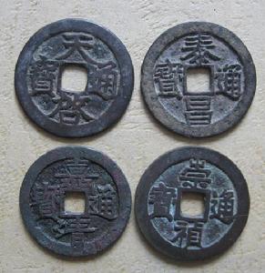 熹宗詔赦天下,以是年八月到年底為泰昌,明年為天啟元年,因其父光宗在位僅一月,未及鑄錢,乃命寶泉、寶源局將自己的年號———“天啟”與“泰昌”同時補鑄。至於“天啟泰昌”合號錢則可能與補鑄時澆鑄失誤有關。由於數量極其稀少,因而彌足珍貴,時價已近千元。