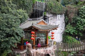洪崖滴翠,洪崖洞一帶曾是林木蒼翠,樹多則蓄水,於是一條小溪從山林間滲出,沿大陽溝、會仙橋一直流到洪崖洞附近,形成一