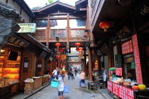 天成巷巴渝風情街,位於第1層,主要展示時尚潮流,以巴渝盛景為載體,展示巴渝風情的青磚、石瓦。有紅檐綠瓦的仿古典民