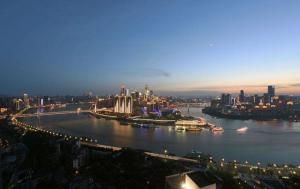 城市陽台,是洪崖洞民俗風貌區的配套項目,面積約7000平方米,可容納1000人同賞兩江匯流的景觀。從解放碑步行10分鐘即