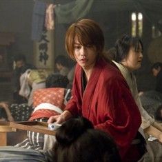 劇照明治11年,日本東京。一名稱為“劊子手拔刀齋”的男人出現在街頭,他毫無理由地斬殺路人,引得人心惶惶。從先父手中繼承了神谷道場的美麗女孩神谷薫(武井咲飾)不顧個人安危,魯莽地走上街頭尋找拔刀齋,危難關頭,幸虧一個路過的男人將其救下。而這個男人,正是消失了已久的拔刀齋本人——緋村劍心(佐藤健飾)。自明治維新成功以來,他立下絕不再殺害一人的誓言,隱姓埋名,帶著一把逆刃刀獨自在各地流浪。而假冒拔刀齋之名作惡的,則是受僱於黑心實業家武田觀柳(香川照之飾)的保鏢鵜堂刃衛(吉川晃司飾)。武田光鮮的外表下包藏著統治世界的野心,為此他操縱女醫師高荷惠(蒼井優飾)製作鴉片,並用販毒賺來的巨款四處購買武器。武田的罪惡勾當早已引起前幕府新選組成員齋藤一(江口洋介飾)、現任明治政府警官藤田五郎的注意,但是在武田有實際行動之前他無法直接插手。與此同時,武田圖謀攫取神谷道場附近的土地,為此他不惜殘殺當地的百姓。