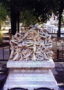 紫禁城御花園三奇石之一,位於天一門路旁左側,石長近80cm,高約60cm,石表面的形狀猶如許多海參互相擁擠在一處,每根海參的大小和表面形狀都與真海參酷似,令人感到自然造化的神奇。 盆景下部配有一方形漢白石須彌座。