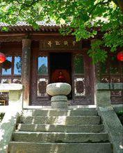 天王殿 | 天王殿青磚黛瓦,朴柱素梁,懸掛“依法護法”匾額和南懷瑾所提對聯: “回首依依窮奢極欲歌舞繁華大夢場中誰識我, 到此歇風清月白梵唄空靈高峰頂上喚迷徒。” 殿內正中供奉的非是宋後所多見諸各處寺院之布袋和尚造像,而是天官彌勒法身。四周周匝圍繞四大天王,造型清俊。天王殿內中央坐像似為律宗祖師道宣大和尚,上懸木匾:“龍華三會”。落款是現今住持本如法師墨寶。天官彌勒法身後供奉的是韋陀護法菩薩,上懸:“千佛應身”匾。 |