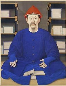 康熙帝讀書像軸清朝自入關定鼎中原後,共有十一代皇帝,除去末代宣統皇帝溥儀,趕上了照相機的時代,留下有照片外,其餘所有的皇帝都有畫像存世。這些皇帝的肖像畫中,大都是人物穿戴整齊的"朝服像",此外還有不少的"便裝像"和"古裝像";皇帝的肖像一般都是一個人獨幅的,也有巨幅作品中皇帝和其他人在一起的群像。清朝皇帝中最高壽的乾隆皇帝,留下的畫像也最多。