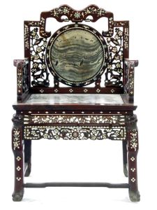 清紅木透雕嵌螺鈿靠椅