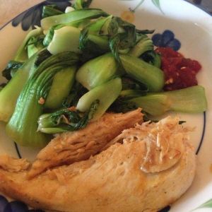 晚:一小碗白薯粥、兩顆植提纖,一份涼拌菠菜和適量的餅乾。