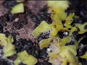 四方晶系。晶體呈四方板狀,沿[001]呈扁平狀。集合體呈鱗片狀、晶簇狀和薄膜狀。黃色至綠色。玻璃光澤,解理面珍珠光澤。透明至半透明。解理沿[001]完全,沿[100]中等。硬度2.5。密度4.13克/厘米^3。在紫外光照射下發亮綠色至淡綠色螢光。