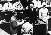 溥儀在蘇聯軍方押解下前往日本。在法庭上,溥儀陳述了日本帝國主義奴役滿洲的計畫和實施過程。他詳細敘述了“九·一八事變”後,天津日本駐軍司令香椎浩平如何強迫他去旅順,關東軍參謀長板垣征四郎怎樣威逼他從旅順到長春去當“滿洲國皇帝”,以及他如何遭受日本帝國主義者的監視,無權甚至無個人的人身自由。