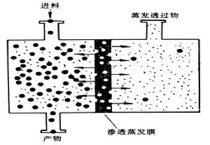 滲透蒸發(pervaporation,PV)是在膜的滲透邊側形成真空,以膜的前後兩側的化學位差為推動力伴隨著相變,由膜選擇吸附及在膜中滲透速率不同而進行分離。本質原因:料液中各組分在膜中的溶解度和擴散速度存在差異。