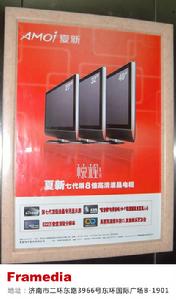 濟南框架廣告有限公司隸屬於分眾傳媒(中國)控股有限公司旗下是整合全國多家電梯媒體資源後的新框架媒介,至今網點網路覆蓋全國61個重點城市(濟南、南京、北京、上海、廣州、深圳、大連、珠海等),形成廣泛覆蓋全國各城市中、高端社區的媒體資源統一網路,擁有超過450,000多個廣告位,每天覆蓋3億主流消費者,並已與眾多的大型企業和國際品牌友好合作,幫助他們在中國市場樹立鮮明、高品位的品牌形象。