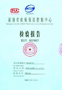 湖南省疾病預防控制中心檢驗報告(公司官網大圖可供查證):