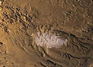 火星之奧林匹斯火山由火星奧德賽號X射線光譜儀的中子偵測器得知,自極區延伸至緯度約60°的地方表層一米的土壤含冰量超過60%,推論有更大量的水凍在厚厚的地下冰層(cryosphere)。