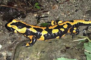 火蠑螈火蠑螈,有時又被翻譯為火蜥蜴,是生活在歐洲大陸上的一種蠑螈,因為外形與蜥蜴近似,有時被當做蜥蜴。 它們的壽命可以非常長,在德國的亞歷山大·柯尼希博物館(MuseumAlexanderKoenig)就有一隻火蠑螈達50歲。與大多數兩棲類一樣是偏向夜行性的動物。由於喜歡藏身在枯木縫隙中,當枯木被人拿來生火時,它們往往驚逃而出,有如從火焰中誕生,因而得名。