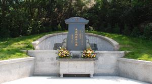 我拾級而上,這是專為陵園修築的一條石板路,在茂密的相思樹的掩映中,曲曲折折的,依著山勢向上綿延了數百級石階。石階上已經頗積了些落葉,除了我們這幾個來自廈門的遊客,再也沒有其他行人,偶而從樹林深出傳出的幾聲鳥鳴,給陵園平添了幾許清幽。