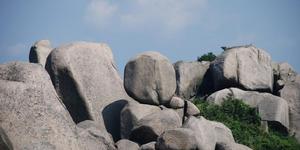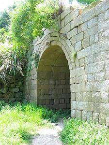 下得陵園,我們沿岔路口的另一個方向前進,很快就到了離陵園不到一里地的東平村。我們繞村而過,徑直上山,行不多遠,一山的奇石便占據了我們的視野,石鷹、石猴、石龜等一眾“生靈”滿山亂走,令人應接不暇。在半山腰,同伴們發現了一個被厚厚的石門關住的鋼筋水泥構築的防空洞,大約是從前的駐軍留下的,止不住好奇的許路與小藍推開石門踽踽前行,沒過多久,就知難而退了!“深不見底啊”,兩人感嘆道,眾人心中不免又多了一絲神秘感。
