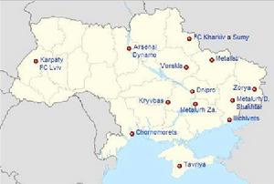 從聯賽各球隊分布,能清楚看到,西部現在僅有利沃夫一座城市,擁有兩支球隊。其中利沃夫隊(FC Lviv)還是升班馬。而東部光是頓涅茨克市就有兩支球隊(其實城市還有另外在低級別聯賽中的職業俱樂部);加上頓涅茨克州還有馬里烏波爾的伊利奇維茨。