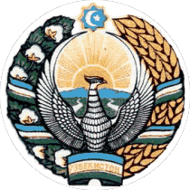 烏茲別克斯坦國徽呈圓形,圓面上有一隻展翅的吉祥鳥,背景是冉冉升起的太陽和碧綠的原野,圓面上端為一顆八角星,星內繪有一彎新月和一顆五角星,圓周兩側為國旗顏色之飾帶捆束的棉桃和麥穗。