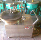 選用傳統工藝鑄造(生鐵)鏊子,外殼選用上等不鏽鋼材料。鏊面直徑為:60-120厘米,電壓:220V,使用電量:約150W度每小時,生產產品規格:薄至透明狀態直至硬幣薄厚。耗氣量:1公斤/小時產量:60張/小時本廠生產的煎餅機可用液化氣和等多種加熱方式。,各種型號電動、手動煎餅機。電動有減速機傳動和皮帶傳動二種方式,供客戶選擇。長期供應各種型號的手工,電動山東大煎餅機,。