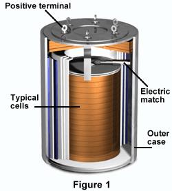 貯存時間理論上是無限的,實際達10年以上。多採用氯化鋰-氯化鉀低共熔物作為電解質,鋯與鉻酸粉末或鐵粉與氯酸鉀作為加熱藥劑。負極活性物質多用鈣、鋰或鎂,正極活性物質為鉻酸鹽、金屬氧化物(如五氧化二釩、三氧化鎢)或硫化物(如二硫化鐵)。多套用於武器和軍事裝置作引信電源。