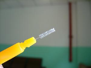 當有牙排列不整齊,口腔內有複雜的修復體或牙齦萎縮,根分叉暴露時,可用特製的牙間刷清除鄰間污垢,其效果顯然優於牙籤或牙線,如果能使牙刷壓向鄰間牙體表面,當可收最佳的潔牙效果。還可用於清潔矯正器、固定修復體、種植牙、牙周夾板、缺隙保持器以及其他常用牙刷難以達到的部位。