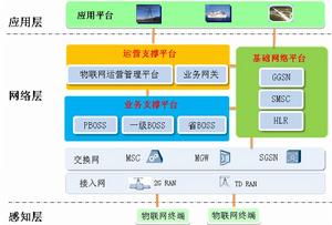 物聯網基礎網路平台:接入網共用現有2G/3G接入網路;核心網新建物聯網專用SMSC、GGSN、HLR。