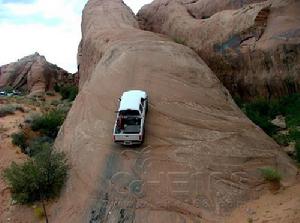 挑戰這樣的陡坡,越野車需要幾項基本的改裝。首先,就是接近角和離去角的需求;能夠上下45°的坡道,幾乎是車輛的極限了,必要的大直徑輪胎必不可少。其次就是胎壓,要想在光滑的岩石面上保證足夠的動力,輪胎必須能夠以充分的面積接觸地面。最後加上充沛的動力,你就具備挑戰極限的資格了。