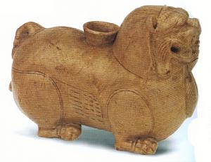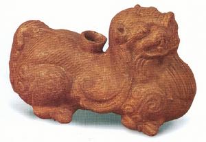 紅陶獸形壺,1959年出土于山東泰安大汶口遺址。山東省博物館收藏。 此壺高21.6厘米;夾砂紅陶