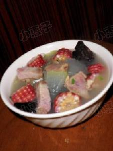主料: 冬瓜 250克 鹹肉 150克 黑木耳 2朵 玉米 1根