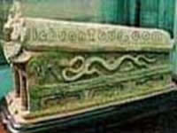 棺首左側豎徘隸書刻墓志銘“故上計史王渾伯昭以建安拾六歲在辛卯九月下旬卒其拾七年六月甲戌葬嗚呼哀哉”。從右至左凡5行35字,為漢隸書法精品。棺首右側刻1人倚門而立,露其半身,身著寬袖長服,上有雲帶,下有護腿甲。棺左壁刻一龍,頭有角,身有翅,背有鰭,口銜綬帶。棺右壁刻一虎,肩有翅,身刻環節紋。棺後端刻一玄武,一蛇纏繞其身,兩首相親。石刻意境深邃,造型生動,刻工精巧。蘆山漢刻為世人讚嘆,我