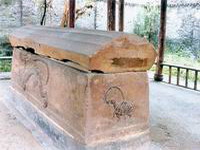 四川省文物保護單位王暉石棺及石刻,距蘆山縣城不到1公里,占地700平方米,為中式庭院建築,石棺周邊就地造亭,便於遊覽、觀賞。石棺製作於建安十七年(公元2...