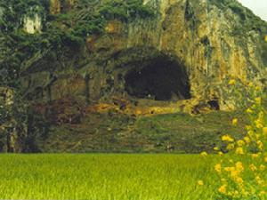 大洞,在今珠東十里村,距縣城紅果80餘公里,地理位置在北緯25。38′37″和東經104。44′的交點上,處於貴州高原西部岩溶從溝地帶,地帶海波一般1400—2000米。大洞則位於十里谷地西部邊緣,其所在山體發育成三層塔形洞形,各層之間有堅井、陡坎相通,最低層和最高層垂直高差近200米,最下層與地下河道相通。古人類居住在大洞中層,亦屬古老地下河道,長1660米,洞廳縱深250米,平均寬32米,高25米。